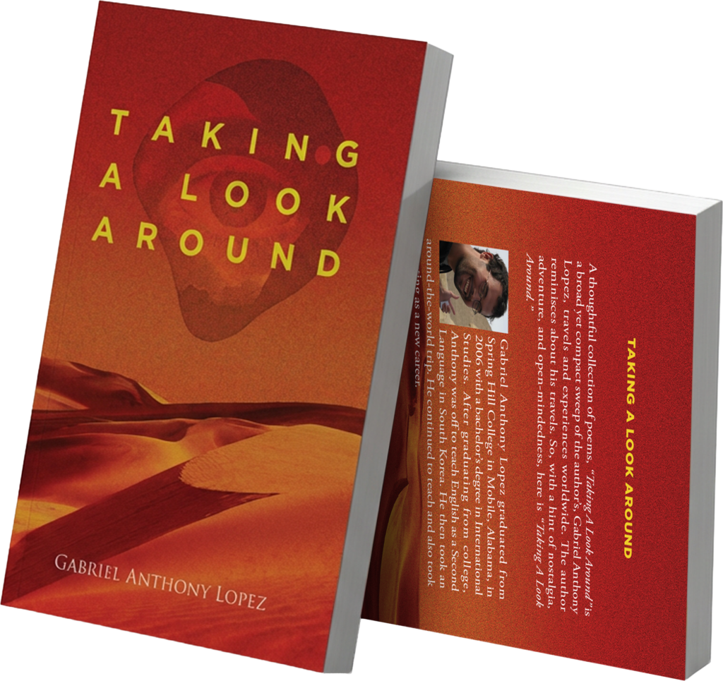 A thoughtful collection of poems, “Taking A Look Around” is a broad yet compact sweep of the author’s, Gabriel Anthony Lopez, travels and experiences worldwide. The author reminisces about his travels. So, with a hint of nostalgia, adventure, and open-mindedness, here is “Taking A Look Around.”